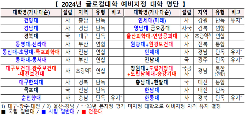 교육부와 글로컬대학위원회는 16일 예비지정 평가위원회의 평가와 글로컬대학위원회의 심의를 거쳐 이 같은 내용의 ‘2024년 글로컬대학 예비지정 평가 결과’를 발표했다.